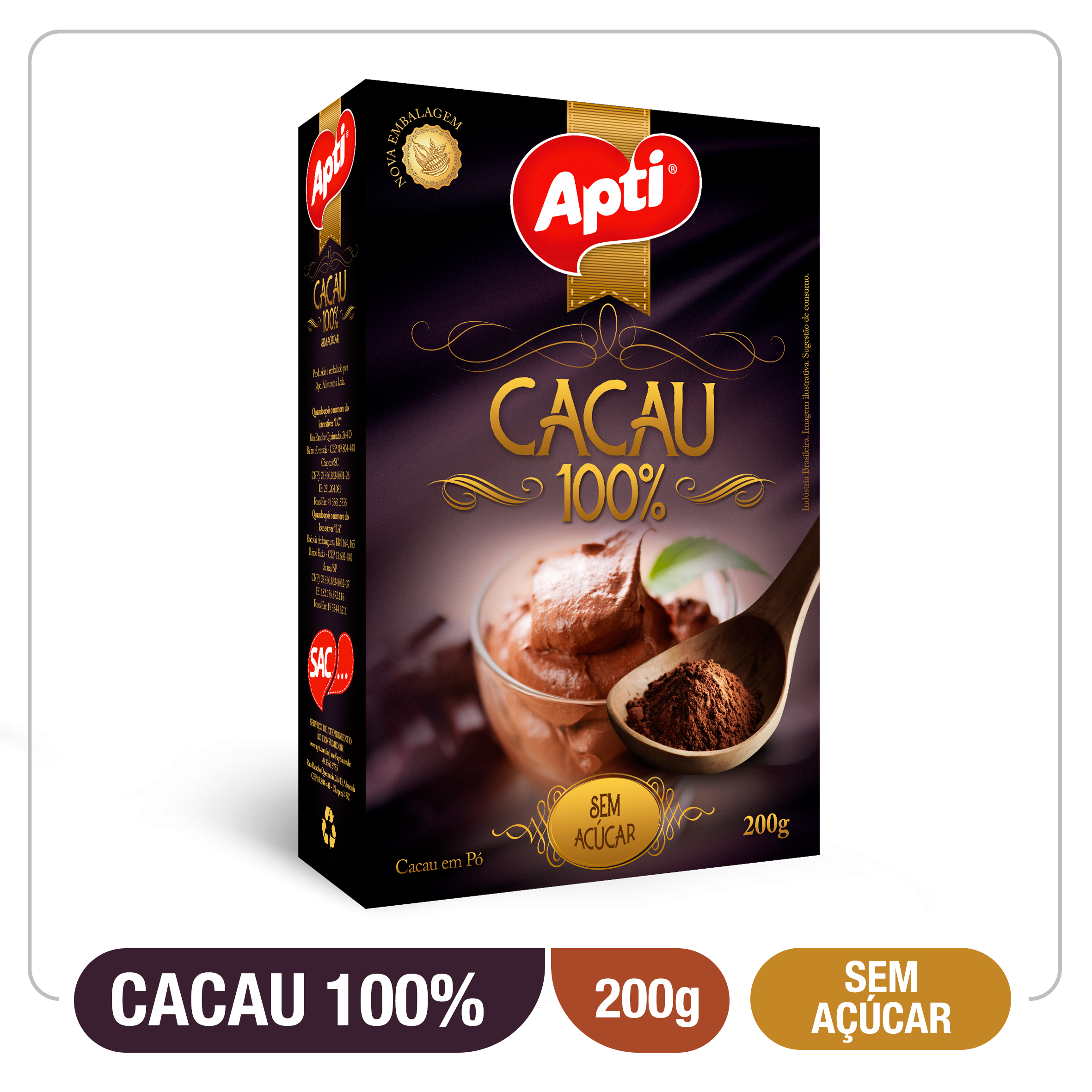 Cacau Em Pó Apti Sem Açúcar 100% Cacau 200G