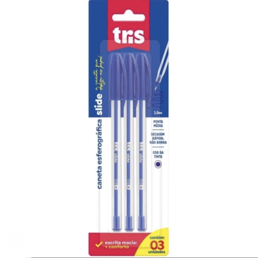 Caneta Esferográfica Tris Slide Azul 1.0MM 3UN