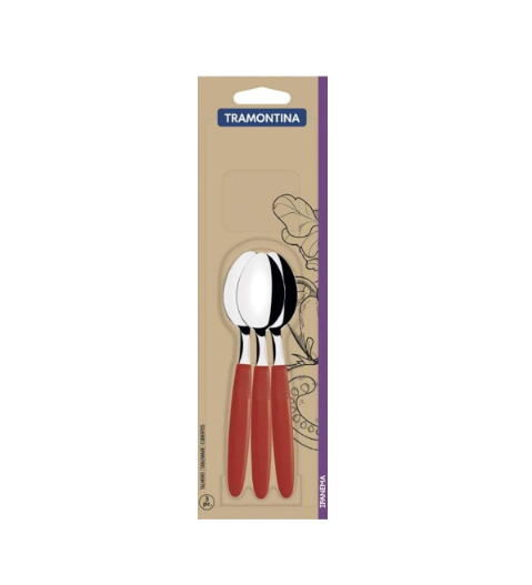Colher Mesa Tramontina Inox Ipan 3pcs Vermelho