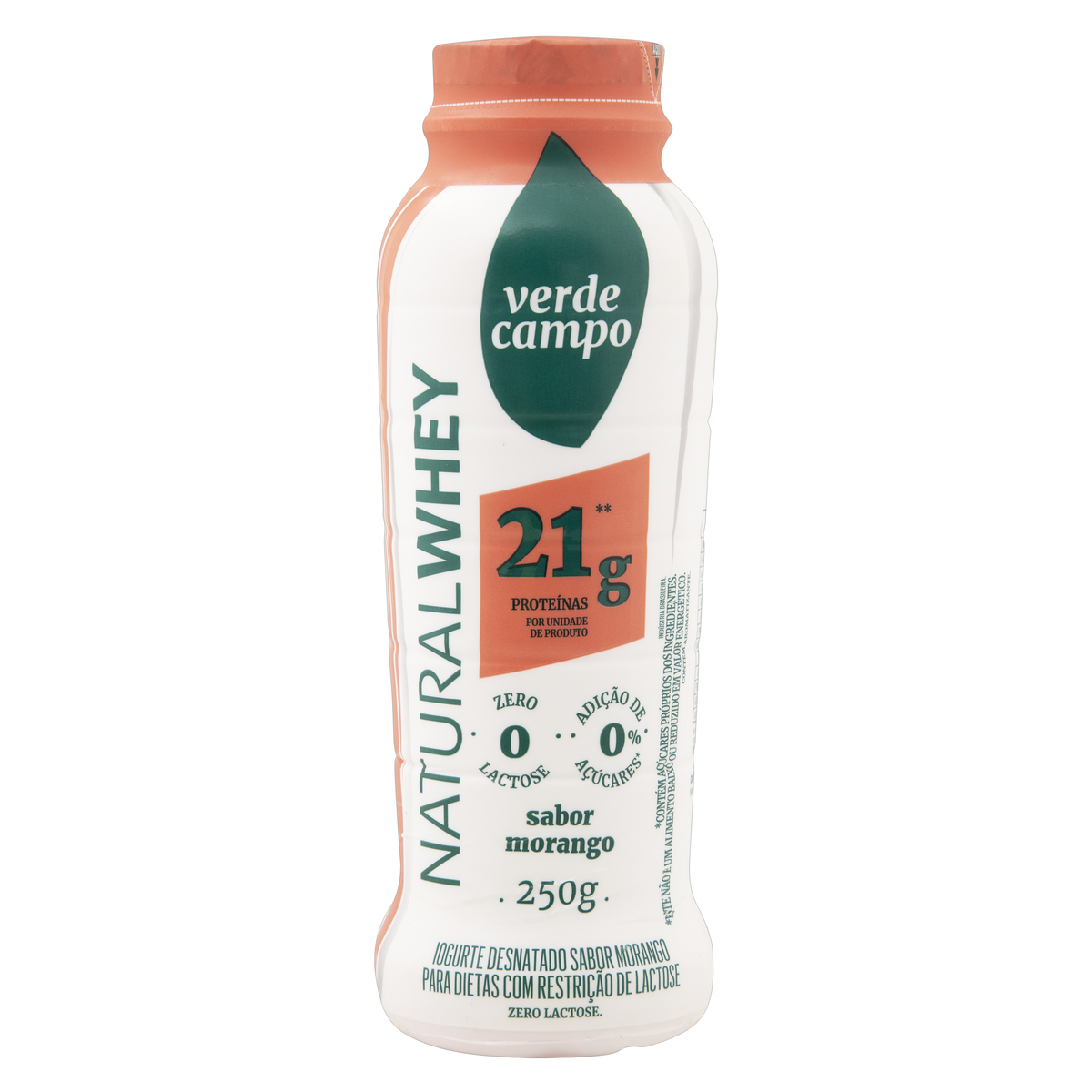 Iogurte Natural Verde Campo Whey Morango Garrafa 250G
