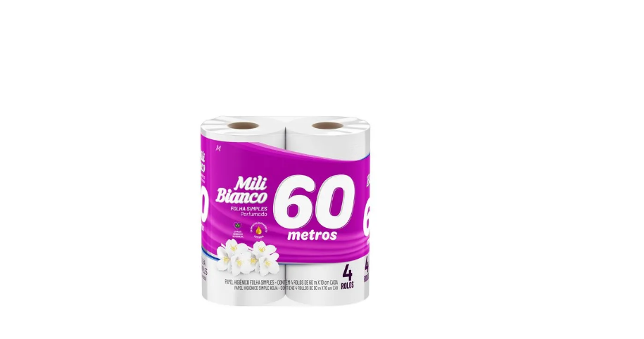Papel Higiênico Folha Simples Mili Bianco 60M Perfumado 4Und.