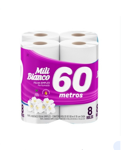 Papel Higiênico Mili Bianco Perfumado 60 Metros Pacote 8 Un